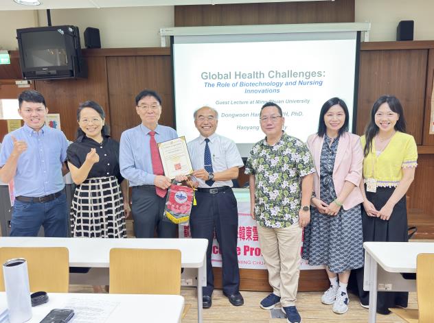 本次講座獲教育部高教深耕計畫支持,秉持「跨域整合,接軌國際」的教育核心,特邀曾任世界衛生組織(WHO)顧問的韓東雲教授親臨授課。韓教授深入剖析全球正面臨的健康不平等及高齡化社會挑戰,並探討生技與護理創新如何成為未來醫療體系轉型的關鍵。學生在課堂中,不僅吸納了跨國醫療政策的實務經驗,更在與國際頂尖學者的對話中,精進了對於健康科技應用與預防醫學的分析洞察力。