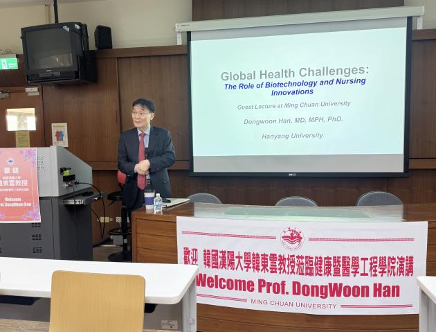 為協助學生掌握全球健康產業脈動並建構國際防護視野,銘傳大學健康暨醫學工程學院近日圓滿舉辦「國際學者講座:韓國漢陽大學韓東雲教授短期授課」計畫。透過跨國學者的實務分享與前瞻性教學,帶領學員直擊韓國醫務管理與生技創新的最前線趨勢,展現本校致力於培育具備國際競爭力之健康科技人才的卓越成效。